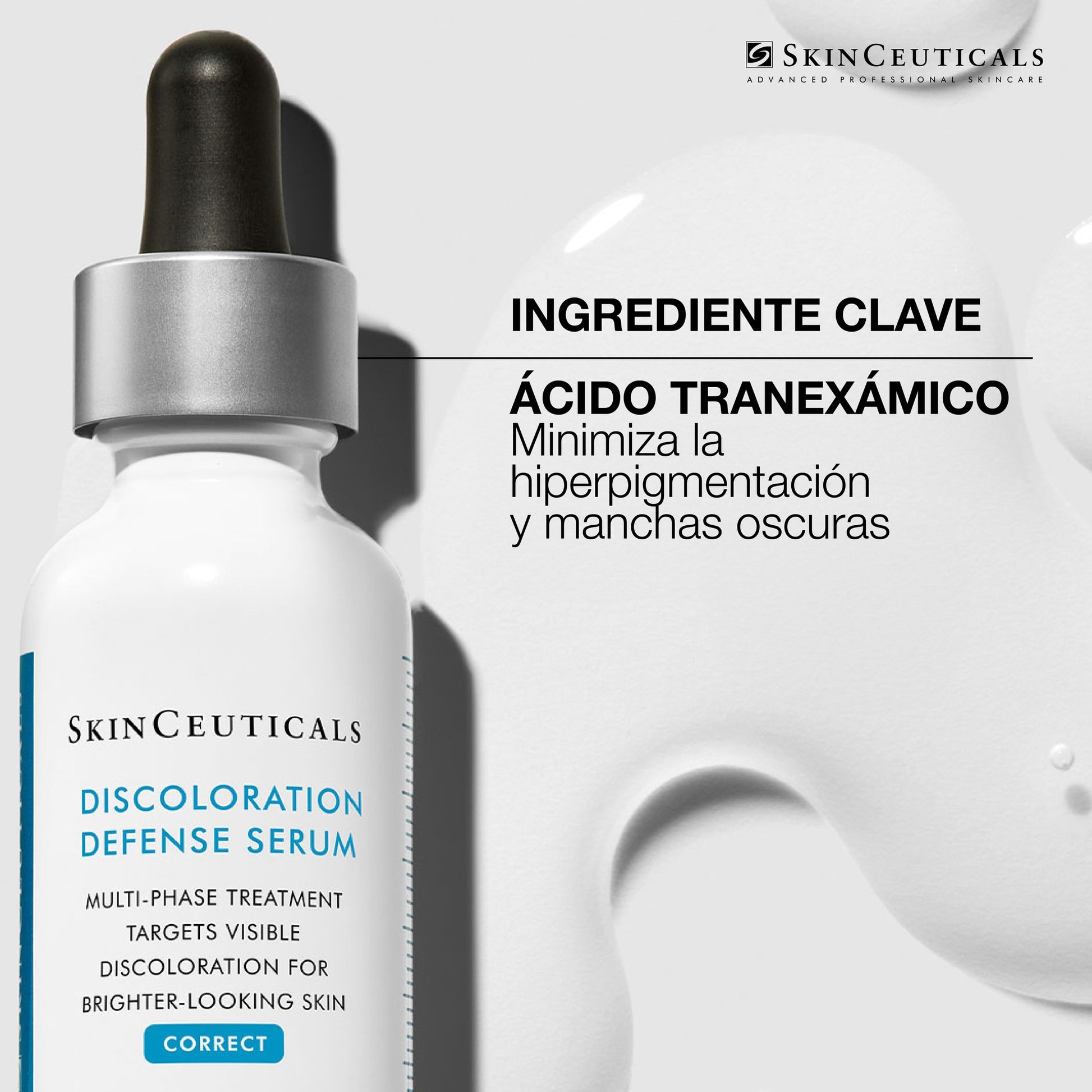 Unifica el tono y combate las manchas oscuras con Discoloration Defense de SkinCeuticals, un sérum de uso diario con fórmula avanzada que reduce visiblemente la hiperpigmentación, marcas post-acné y tono desigual, sin irritar la piel.