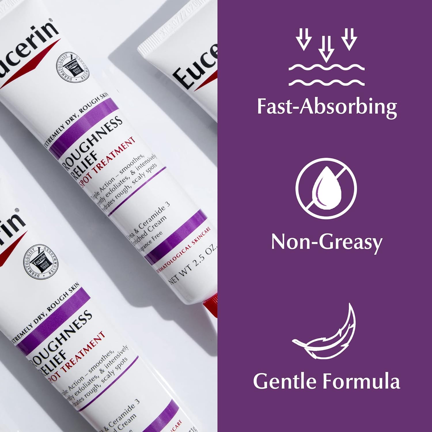 Dile adiós a la piel áspera, rugosa y con textura irregular con Eucerin Roughness Relief Spot Treatment, un tratamiento intensivo diseñado para suavizar zonas difíciles como codos, rodillas, talones y brazos.