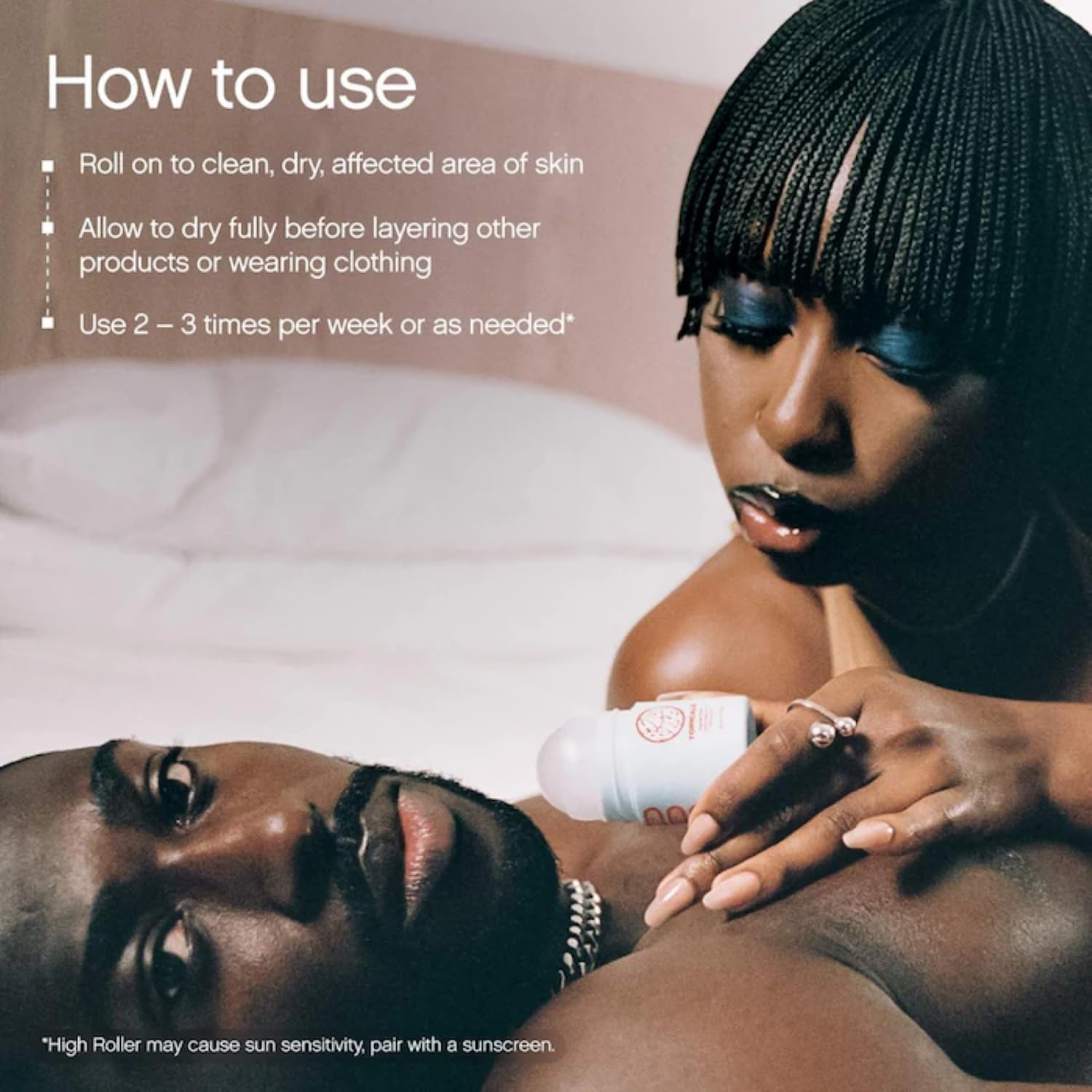 Despídete de la irritación post-depilación, los brotes molestos y los vellos encarnados con High Roller de Topicals, un tratamiento en formato roll-on diseñado para calmar, suavizar y exfoliar suavemente la piel propensa a inflamaciones y obstrucciones.