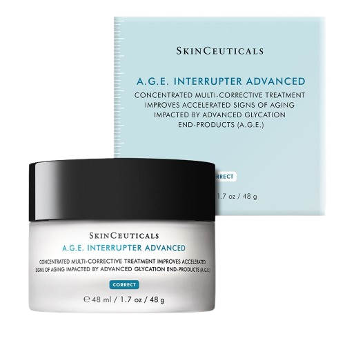 Reduce visiblemente los signos profundos del envejecimiento con A.G.E. Interrupter Advanced de SkinCeuticals, un tratamiento concentrado que combate arrugas, flacidez y daño causado por la glicación, responsable del envejecimiento prematuro de la piel.